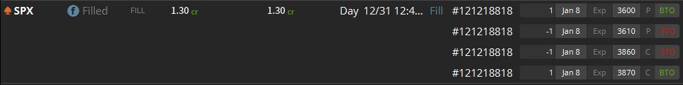 “SPX 7 DTE Jan 8 IC 3860/3870 3600/3610 – 100% expired” -EV-Pete
